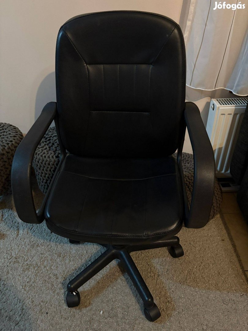 Fekete színű bőrhatású huzattal és feketevázzal, karfával, állítható magassággal. Terhelhetősége maximum 100kg.