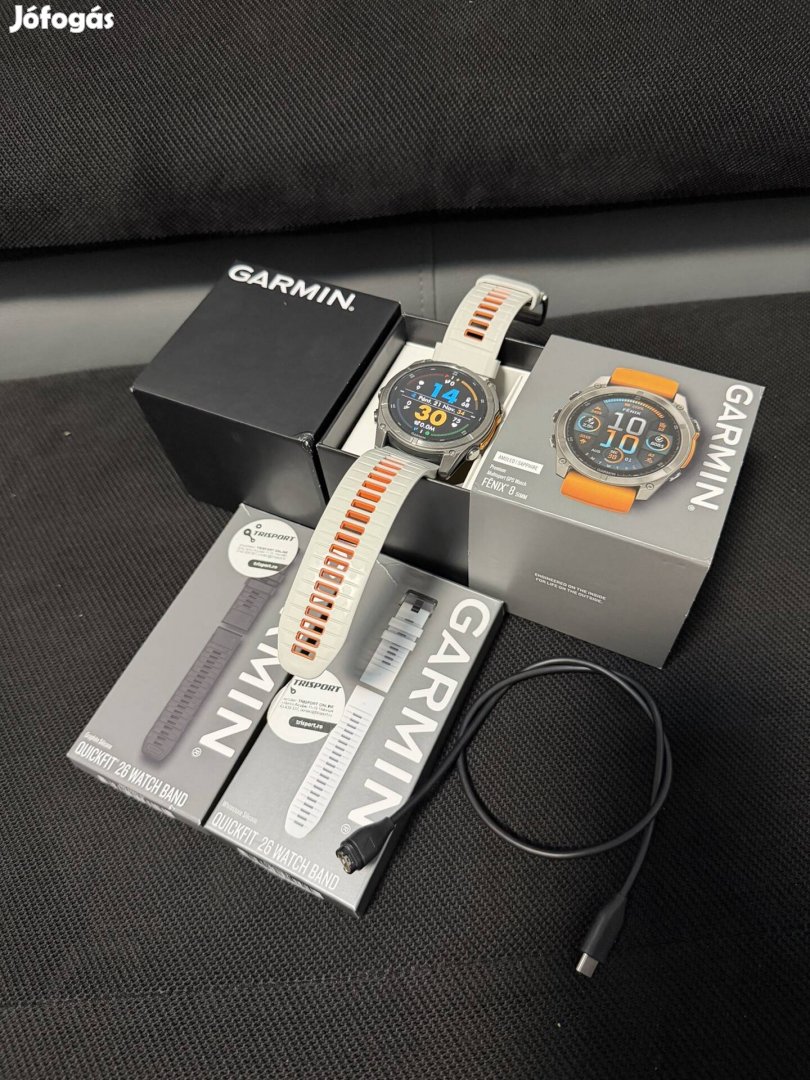 Garmin Fenix 8 Zafír Sapphire AMOLED 51 MM + 2 Gyári Szíj