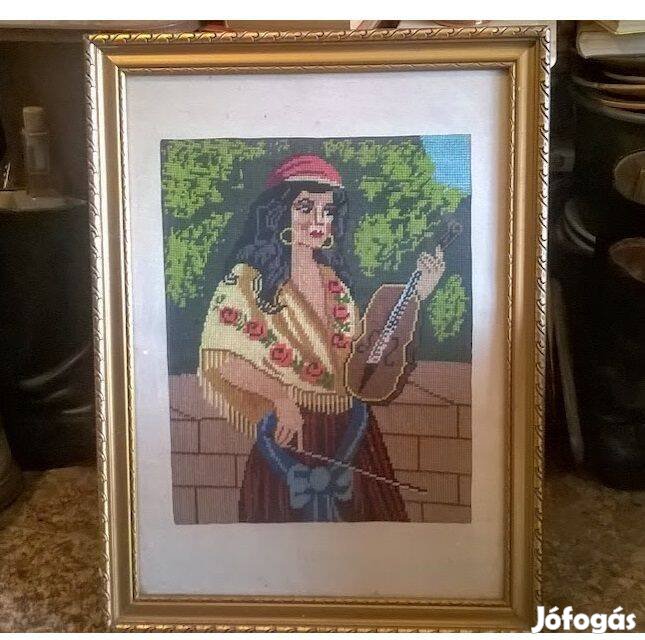 Cinka Panna, gobelin, üvegezve, aranyos blondel keretben, kb. 47x63 cm.