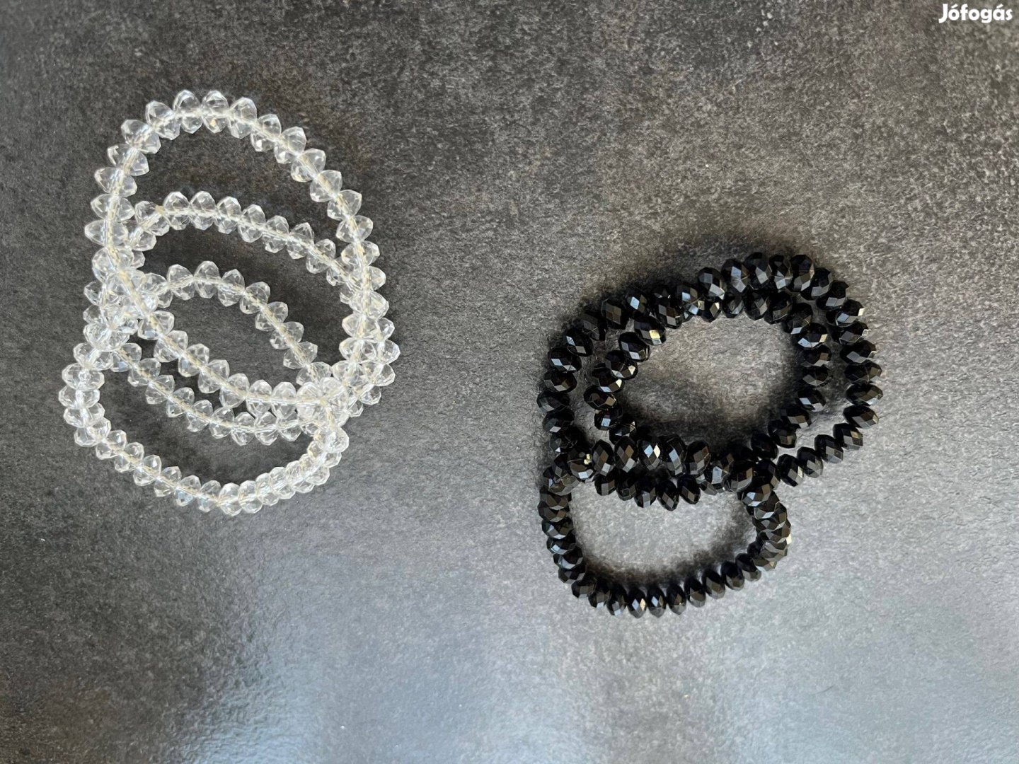 Fényes fekete és átlátszó színű, 3-3 db/szín, erős gumival.