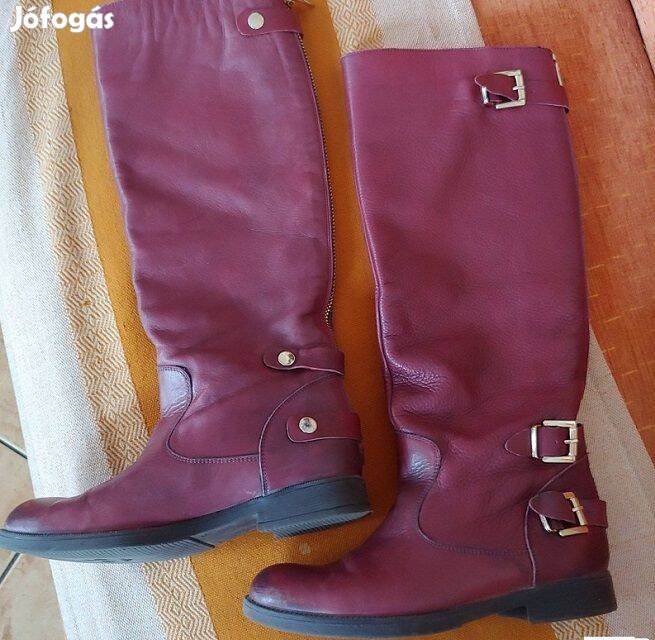 Finom, puha, orra színátmenetes, csatos, bordó bőrcsizma.