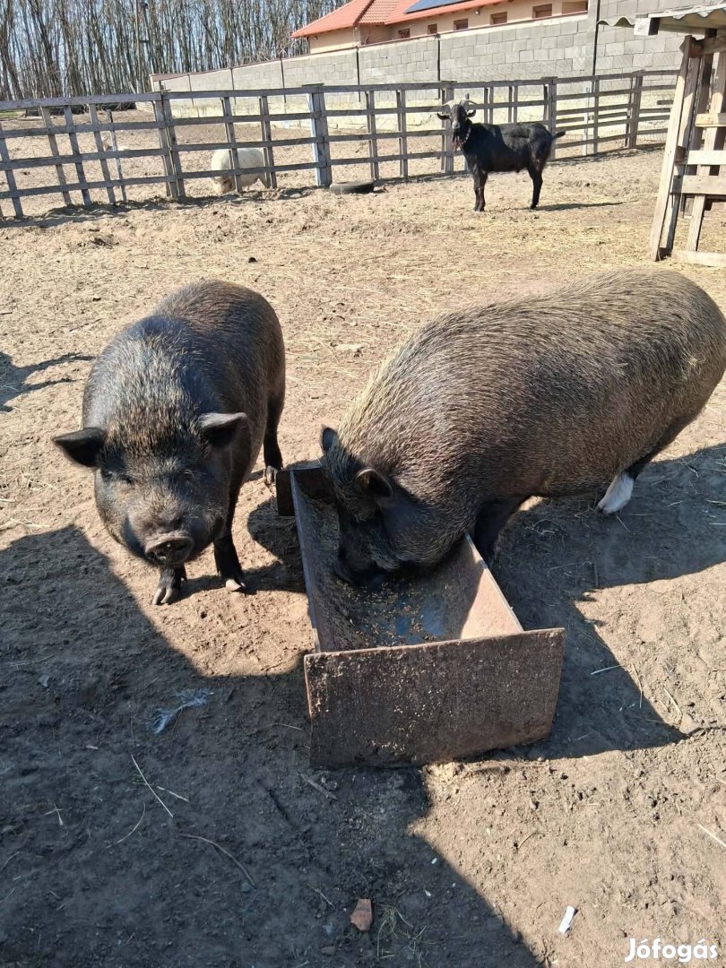 Háztáji, kötetlen tartásában nevelt hízók Debrecenből elvihetők. Fajtája vietnami x mangalica keresztezés. Koruk 1 éves, megfelelő hús zsír arányban. Szabadtartás miatt kedvező izomzattal.