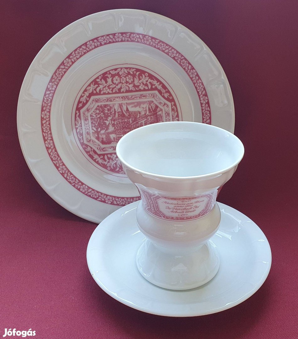 Heinrich Rüdesheim német porcelán reggeliző szett csésze tányér