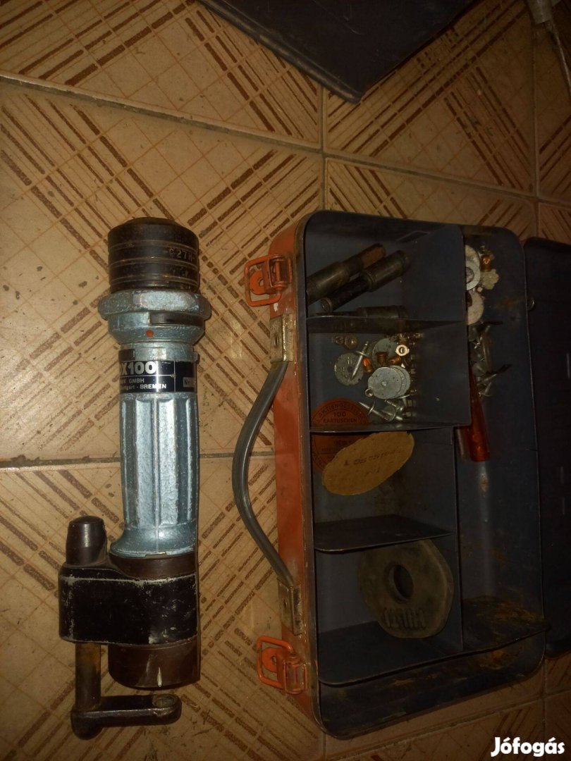 Hilti szögbelövő. A képen látható felszereltséggel . Működéséről nem tudok semmit, ugyanis nem tudom hogy kell működtetni. Küldeni tudom.