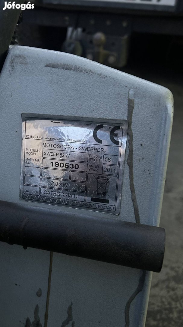 Honda 2.9 KW motoros három kefés 60 l szemétgyűjtő kosaras seprűs gép, kiváló térköre műhelyében csarnokot sepregetésére típus váltás miatt eladó.