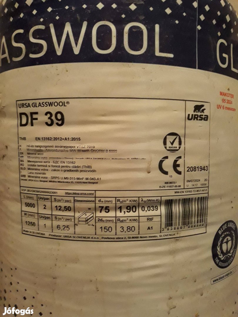 Ursa DF39 új hőszigetelő gyapot eladó. Mérete 5 m x 1,25 m (6,25 m), vastagsága 15 cm.