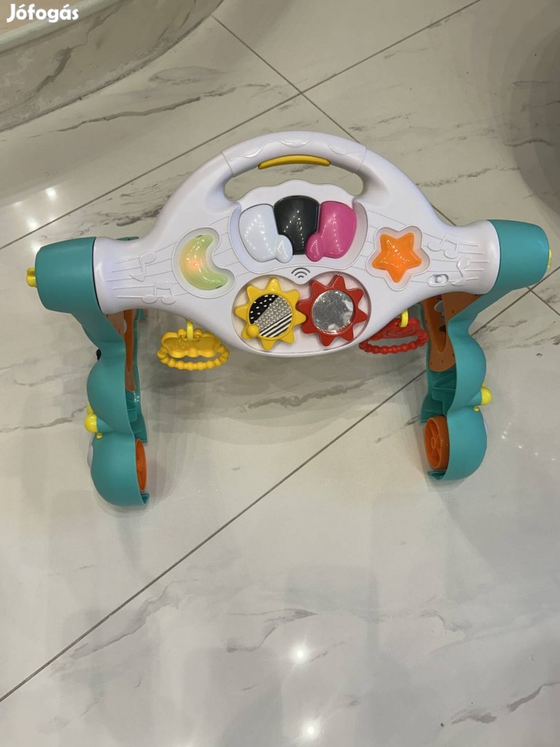 Hibátlan, újszerű, Brendonban vásárolt, minőségi Infantino 3in1 járássegítő rengeteg funkcióval, húzókarokkal, nyomógombokkal, pörgethető, kattogó forgóelemekkel, lámpákkal, dallammal. A játékív része két pozicióba állítható, így a pici babáknál játékívként funkcionál, az ülni tudóknál tanulóasztalként, illetve járássegítőként a már lépegető gyerekeknél.