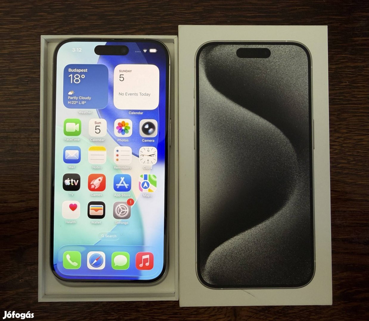 Eladó a képen látható, karc és sérülésmentes, végig képernyőfóliás és tokban használt Iphone 15 Pro telefon, dobozában, töltőkábellel.