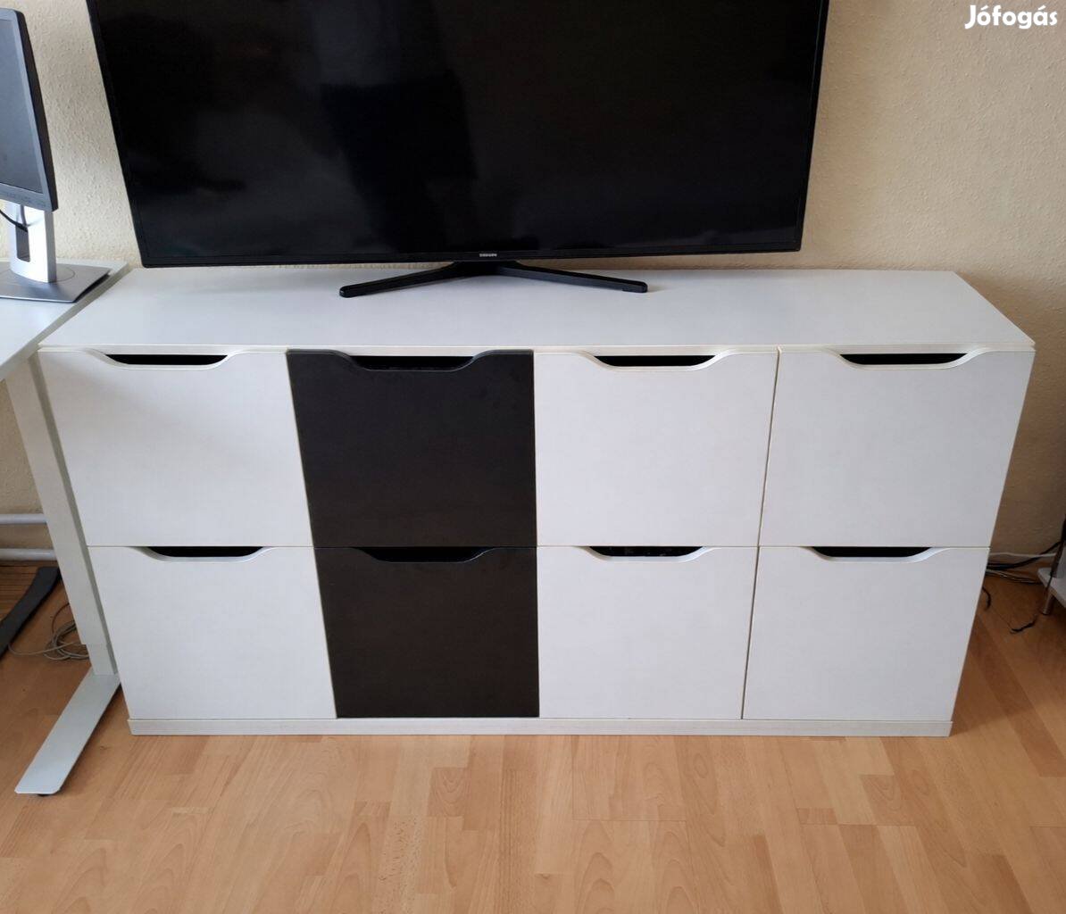 Eladó a képeken látható modern bútor szett: egy fekete-fehér komód és egy hozzá illő íróasztal.