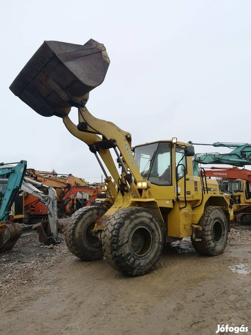 Kawasaki 65 ZV homlokrakodó, 2006-os évjárat, 13 t önsúly, 6 hengeres 105 kW-os Cummins motor, központi zsírzó, klima, azonnal munkára fogható állapotban, importból.