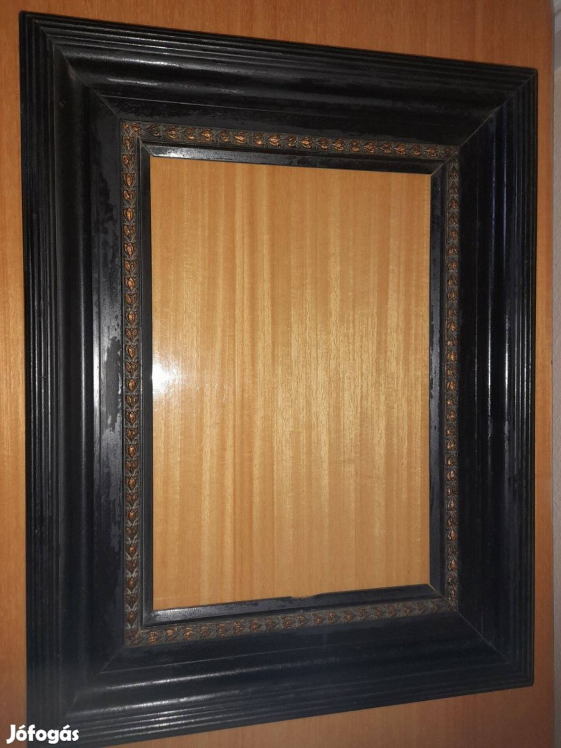 Eladó fekete színű fa képkeret. Méretei: külső: 58x45 cm, belső: 38x25 cm.