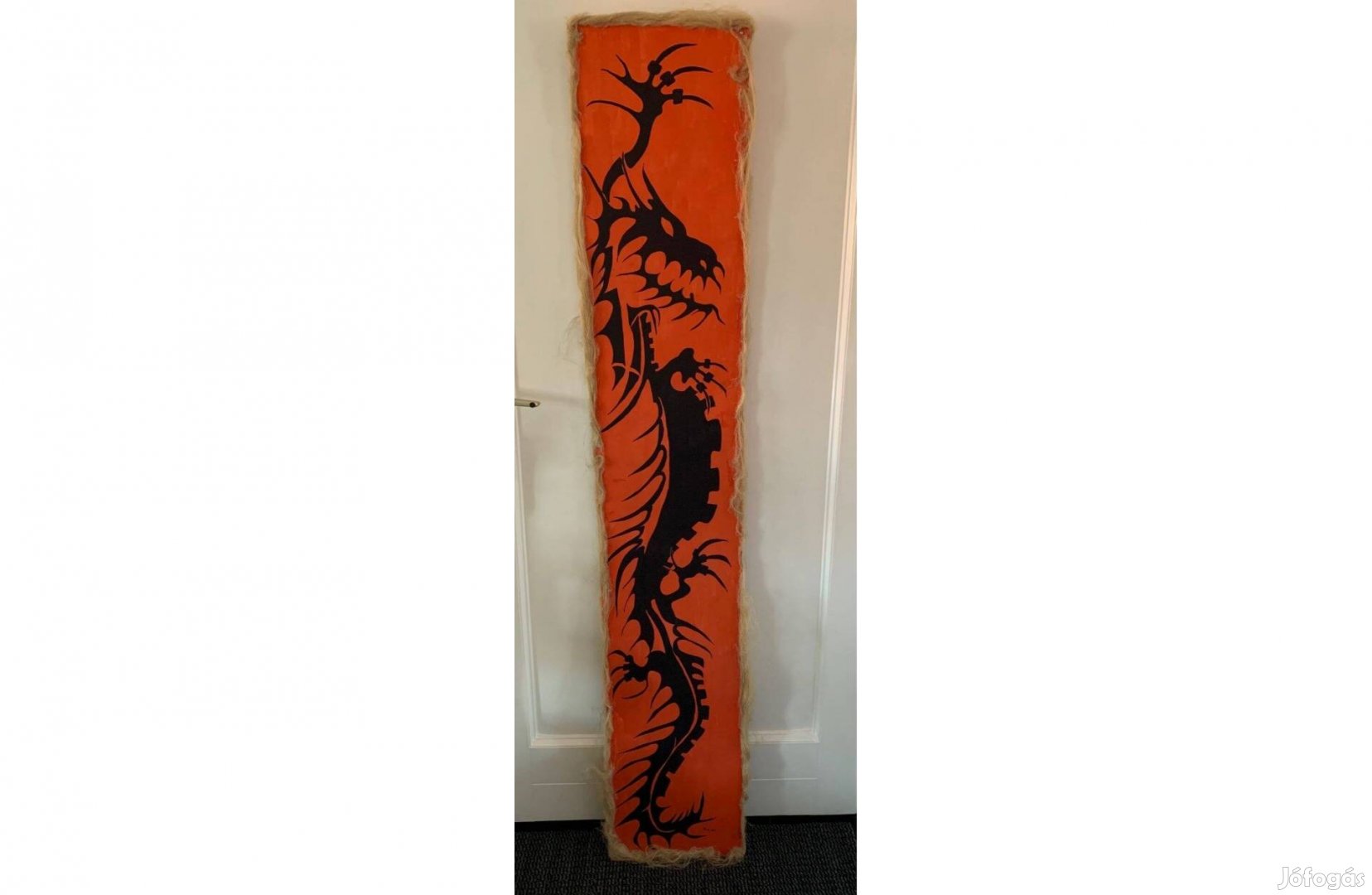 Eladó a képen látható egyedi kézzel festett kínai sárkányt ábrázoló falikép festmény dekoráció egyedi kerettel. Méret: 171*31*2cm. A régi Kínában a sárkány a császári család jelképe volt, és ez a csodalény ékesítette a kínai zászlót is. A kínai sárkány erőteljesen a yang minőséget, a férfiúi princípiumot jeleníti meg. Kérdésekre szívesen válaszolok, csere nem érdekel, árut vissza nem veszek. Postázás esetén egyeztetés szükséges, a vevőt terheli a posta költség.