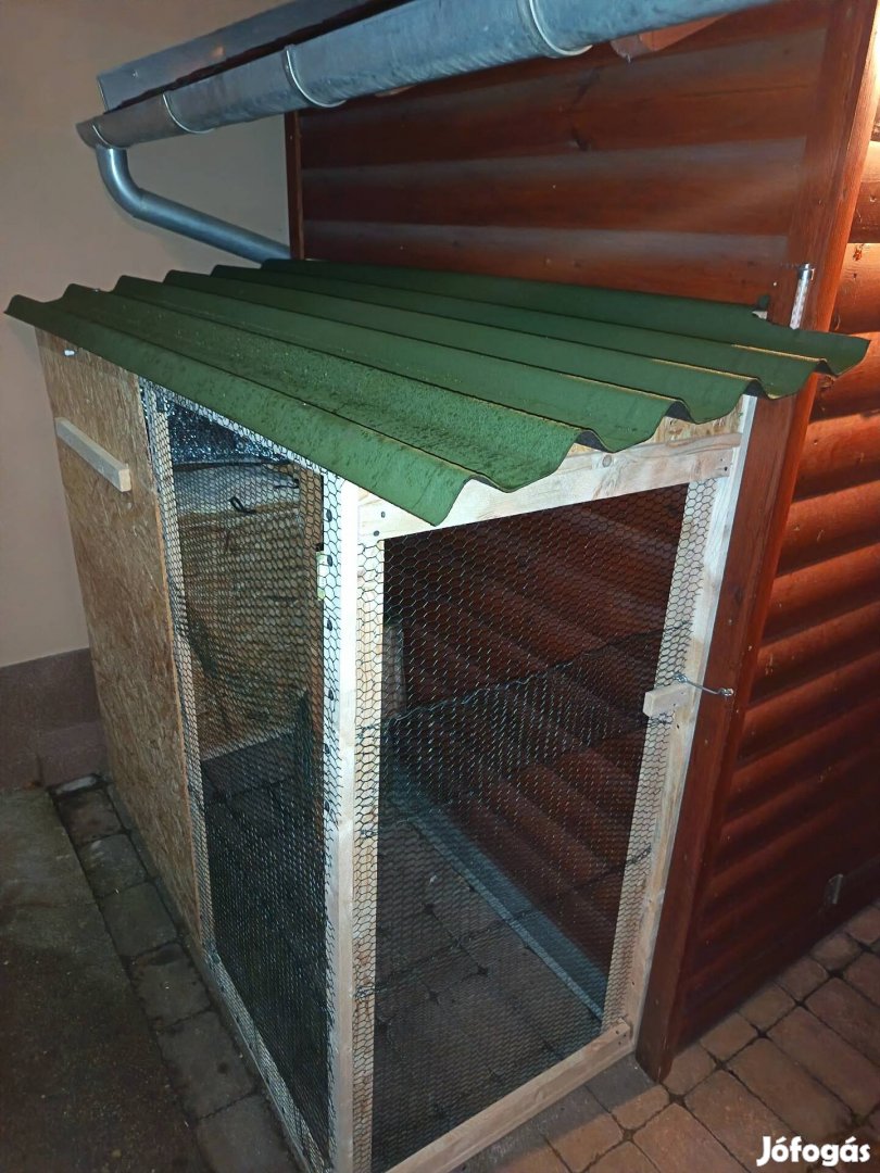 Cica karanténnak készült, egyszer volt benne kb 4 órát :-) Méretei: 168 cm széles, 155-165 cm magas, 80 cm mély, hátfala nincs (felcsavarozhatóra csináltam, így sokkal stabilabb). A felhasznált anyagok értéke kb. 45.000 forint.