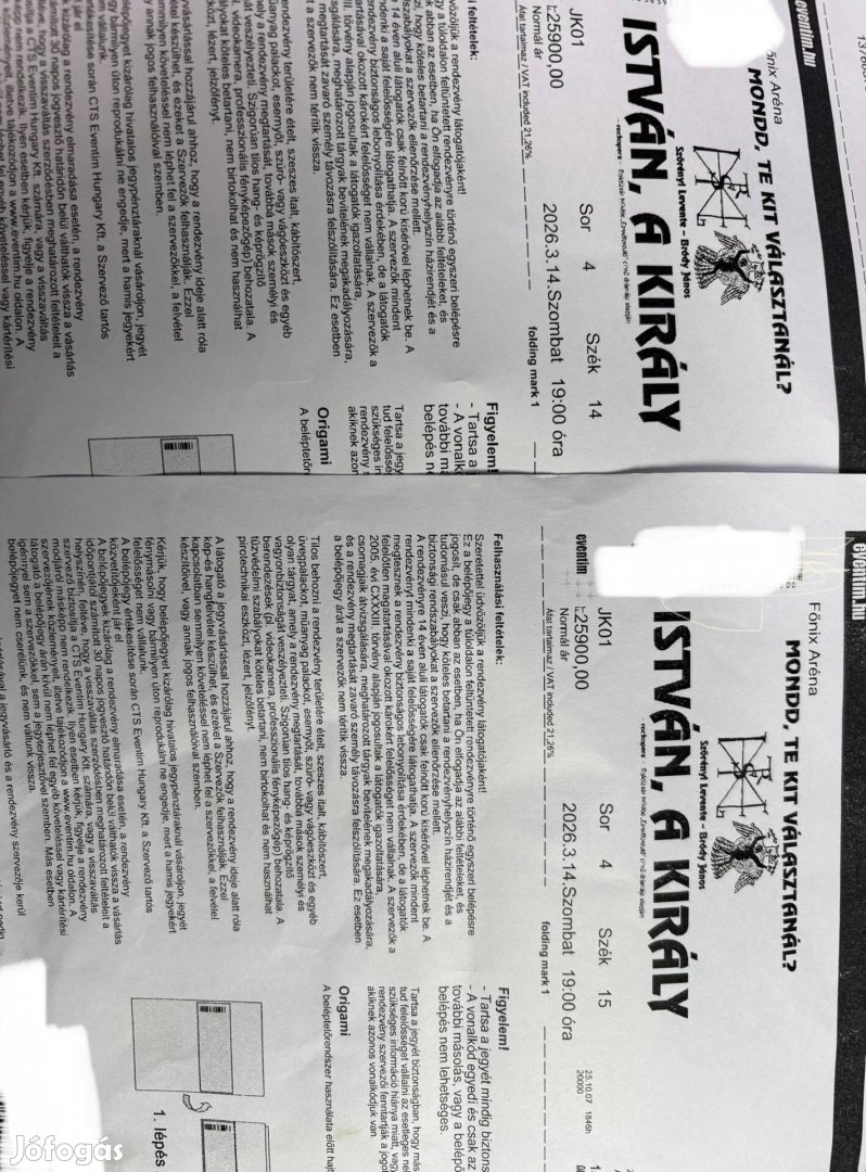 2db jegy Március 12-re Debrecen Főnix csarnokban megrendezett