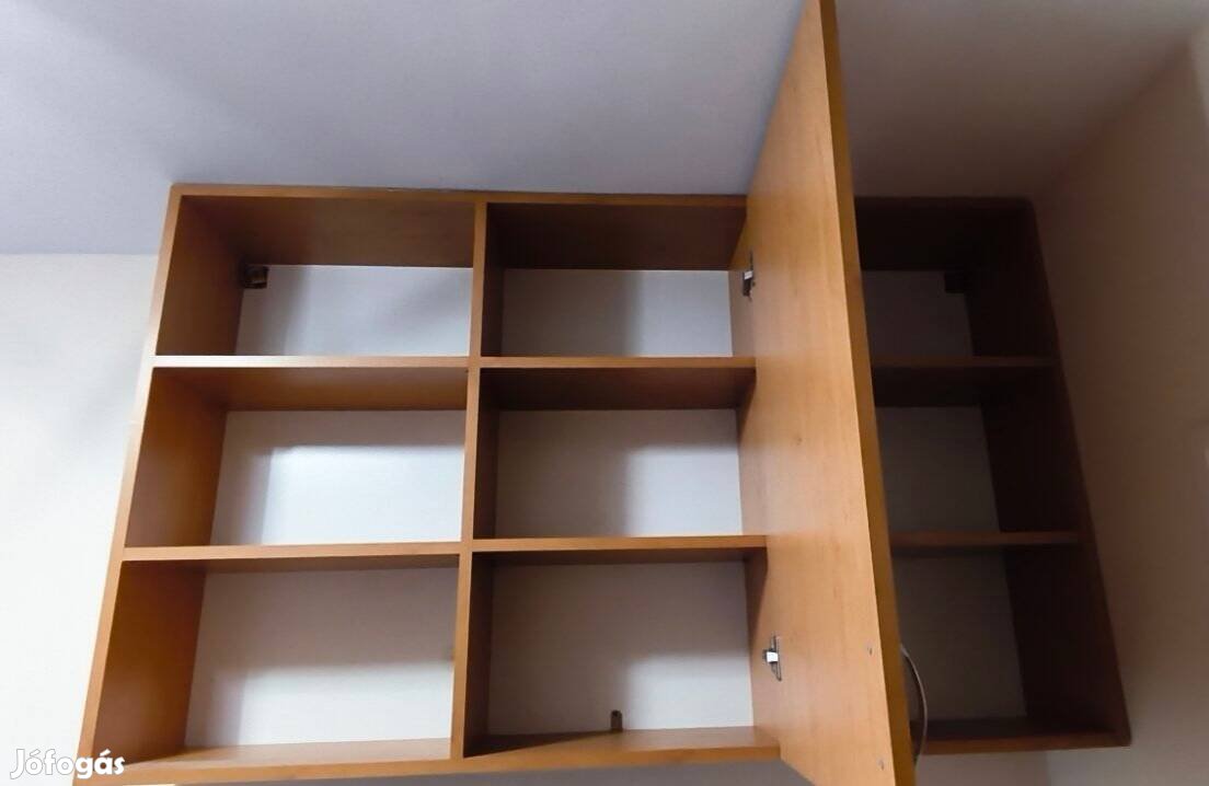 150 cm széles, 90 cm magas, 25 cm mély. 3*3 db polccal rendelkezik.