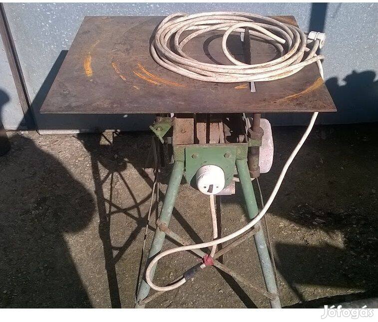1100 wattos villanymotorral hajtott asztali körfűrész. Maszek gyártmány.