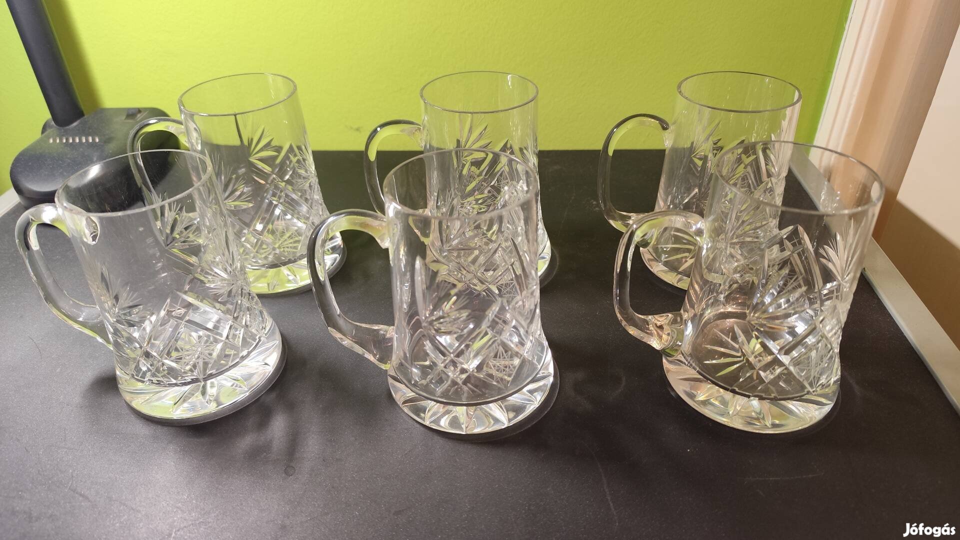 Kb. 2 és fél deci űrtartalmú kristály korsó készlet hibátlan állapotban.