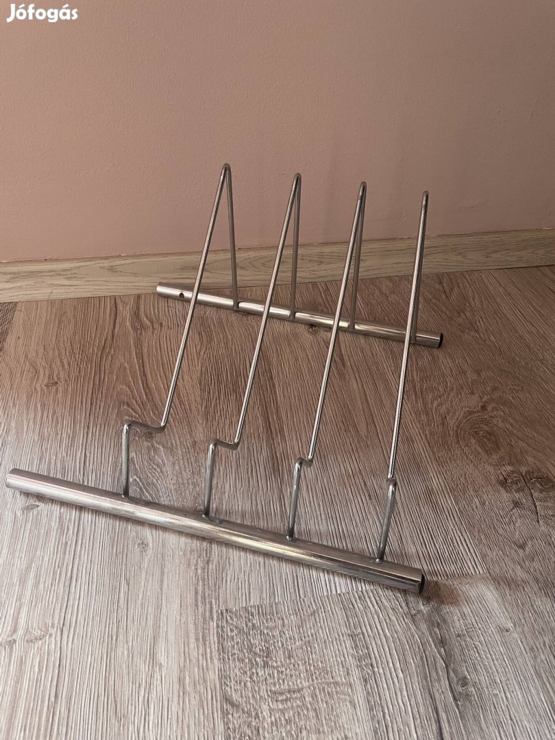 Kihasználatlanság miatt eladó króm cipőállvány. Az egyik tartó le lett vágva, mert fülbevalókat tartottam rajta, az utolsó fotón látszik, hogyan. Egy pár cipő kényelmesen elfér rajta így is.