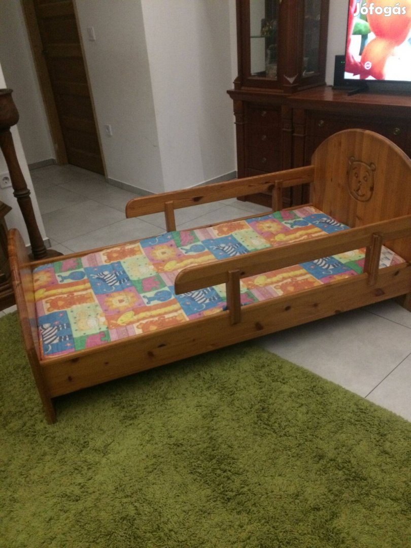 Eladó a képen látható szép állapotú ifjúsági fa ágy 80x160 cm kókuszmatraccal .