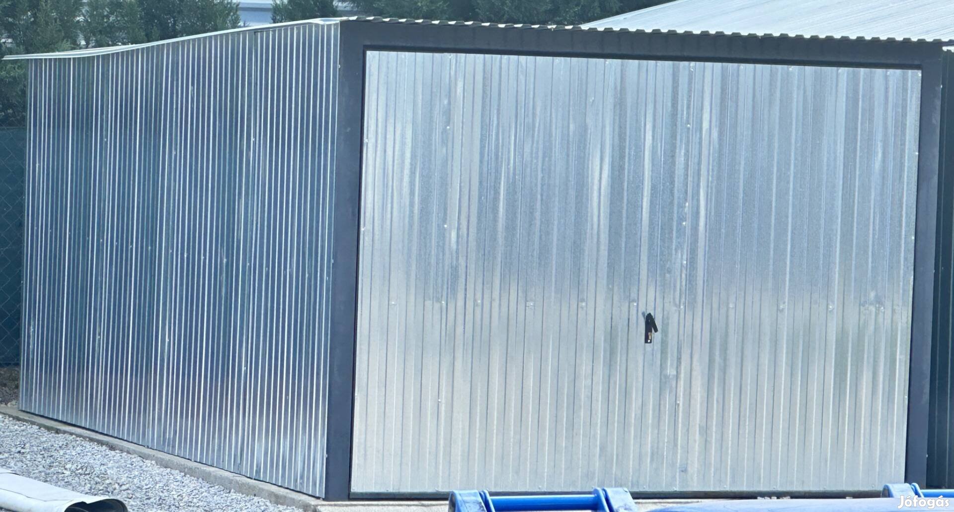 3x5 lapos tetős lemez garázs felfele nyílós ajtóval..Szétszerelésben és szállításban nem tudok segíteni