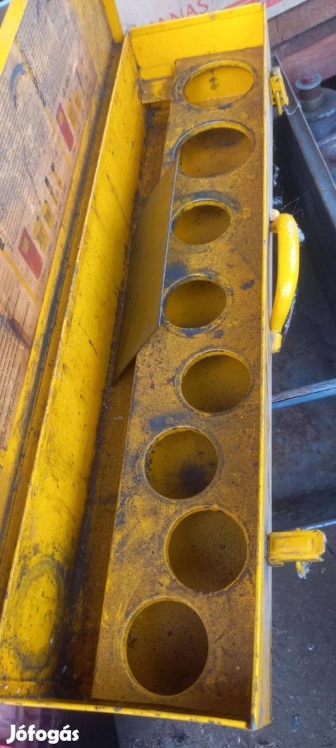 Lemez koffer láda. Menetvágó szerszámok voltak benne.