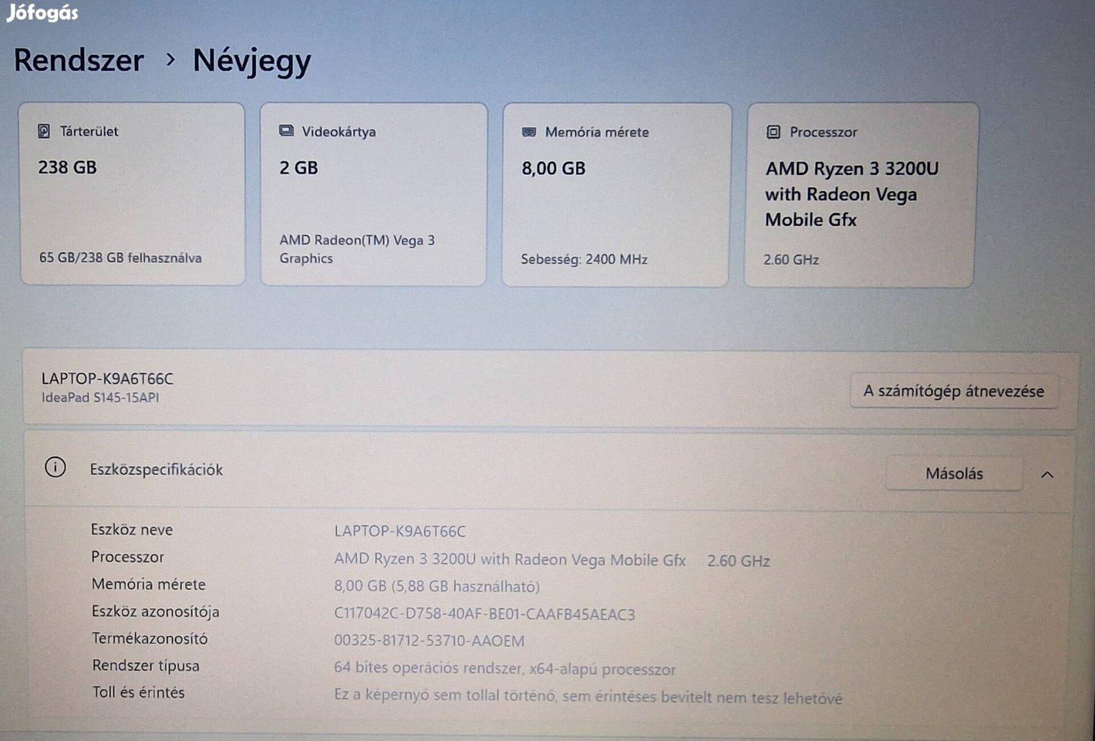 Lenovo Ideapad S145-15API laptop