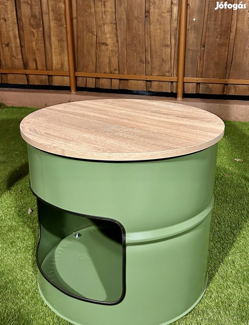 Ipari loft dohányzóasztal hordóból - egyedi upcycling darab