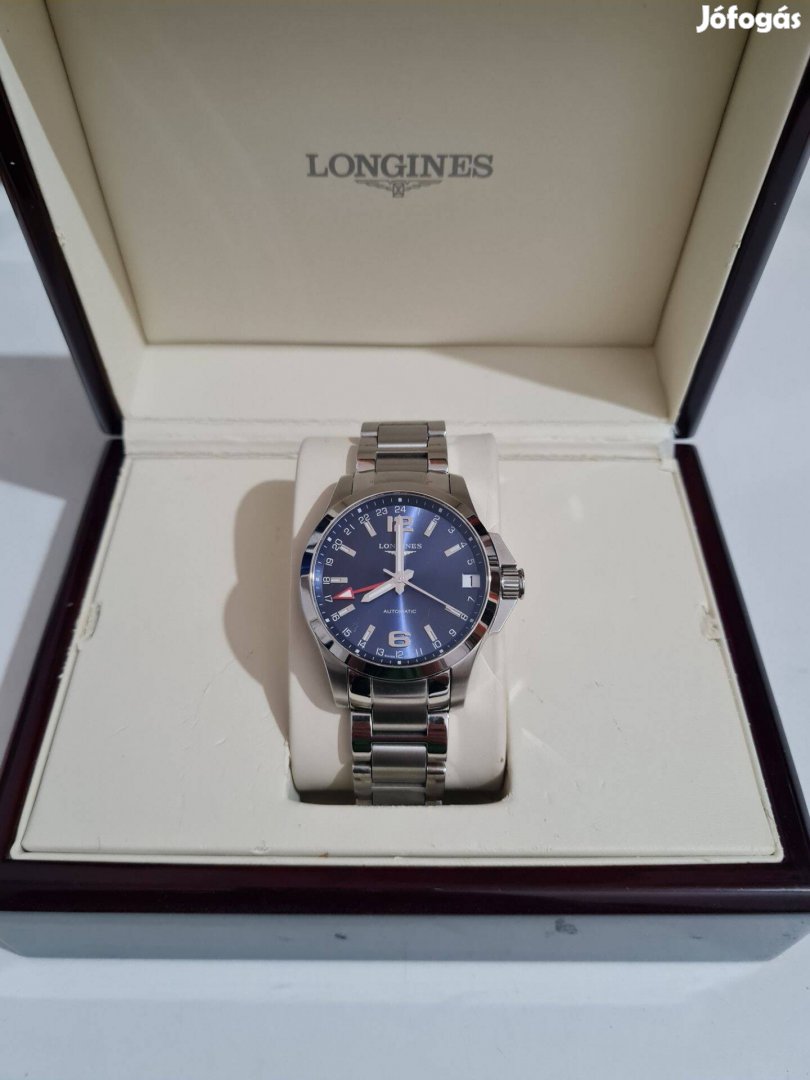 Longines Conquest Gmt Automata szép állapotban,dobozával egyéb tartozék nélkül!Vékony csuklóra jó a szíj,pótszem nincs!.Szervíz ismeretlen..Kn..41mm...Ár..325000ft..