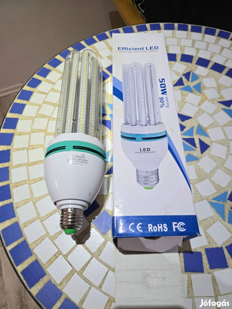 Jellemzők: 50W teljesítményű (ami egy hagyományos ~300-400W-os izzónak felel meg), 6000K (hideg fehér) színhőmérsékletű, és szabványos E27 foglalattal rendelkezik.