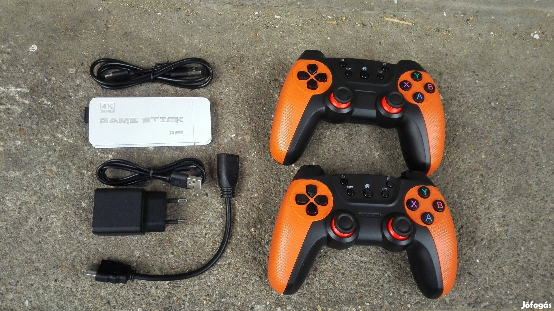 M15 Plus Retro konzol két vezeték nélküli kontrollerrel (aksisak).A csomagba van kábel és töltő adapter is amivel lehet tölteni a joyokat.40 000 Beépített Klasszikus Játékkal, 4K HDMI TV Kimenettel, 2.4G Vezeték Nélküli Kontrollerrel, 128gb micro sd-vel.