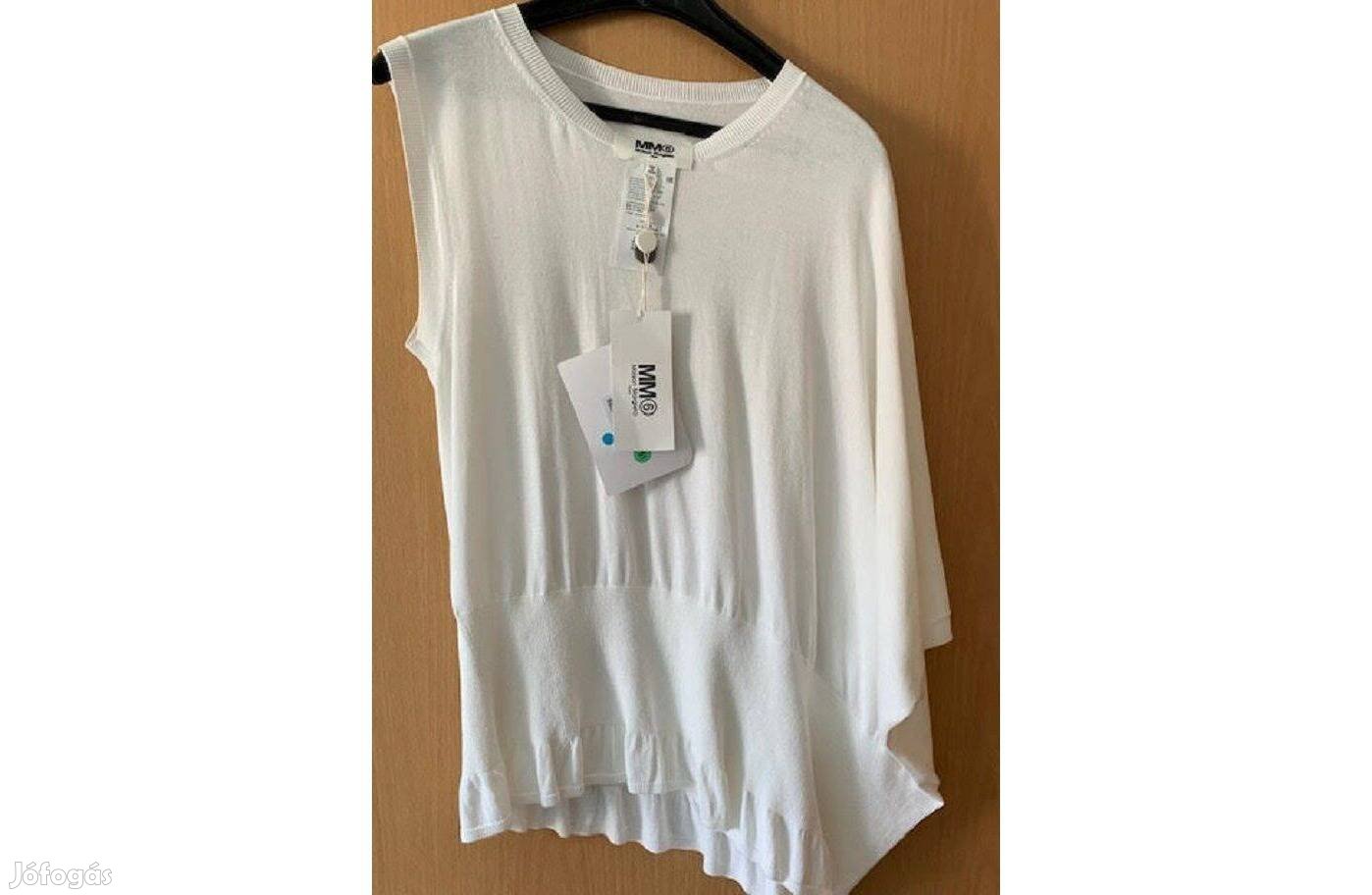 Eladó a képen látható olasz eredeti, új, címkés Maison Margiela MM6 fehér, gépi kötött, gyönyörű aszimmetrikus felső S méretű.