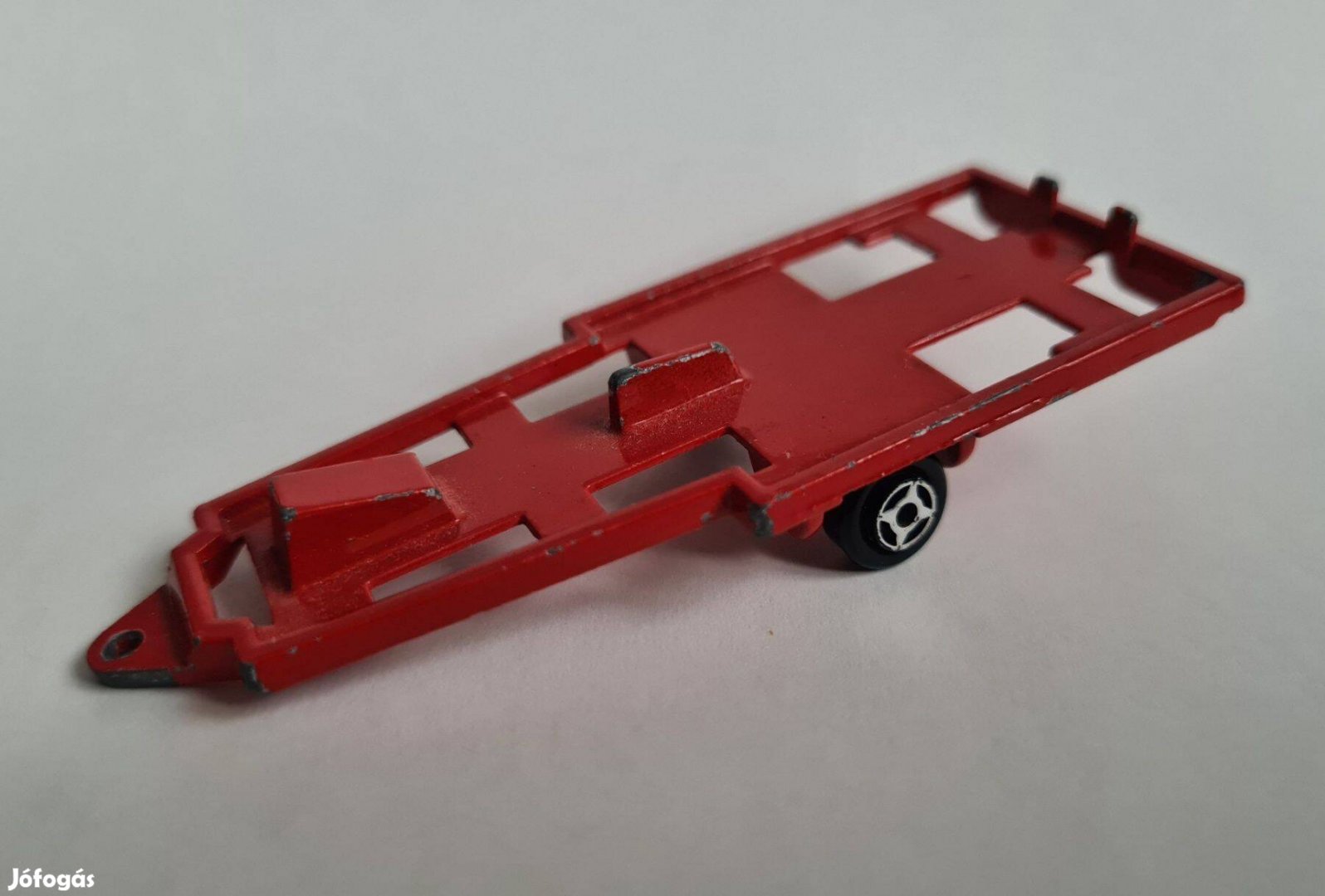 Eladó a képeken látható Majorette vintage kisautó utánfutó. A tengely nem ferde, a kerekek hibátlan futásúak.