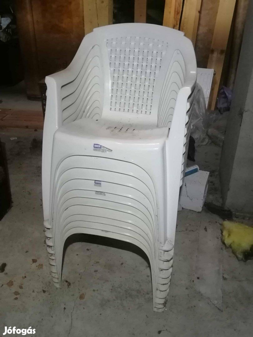 Eladó a képen látható sérülésmentes fehér műanyag székek 10db van összesen, Debrecenben személyesen átvehető