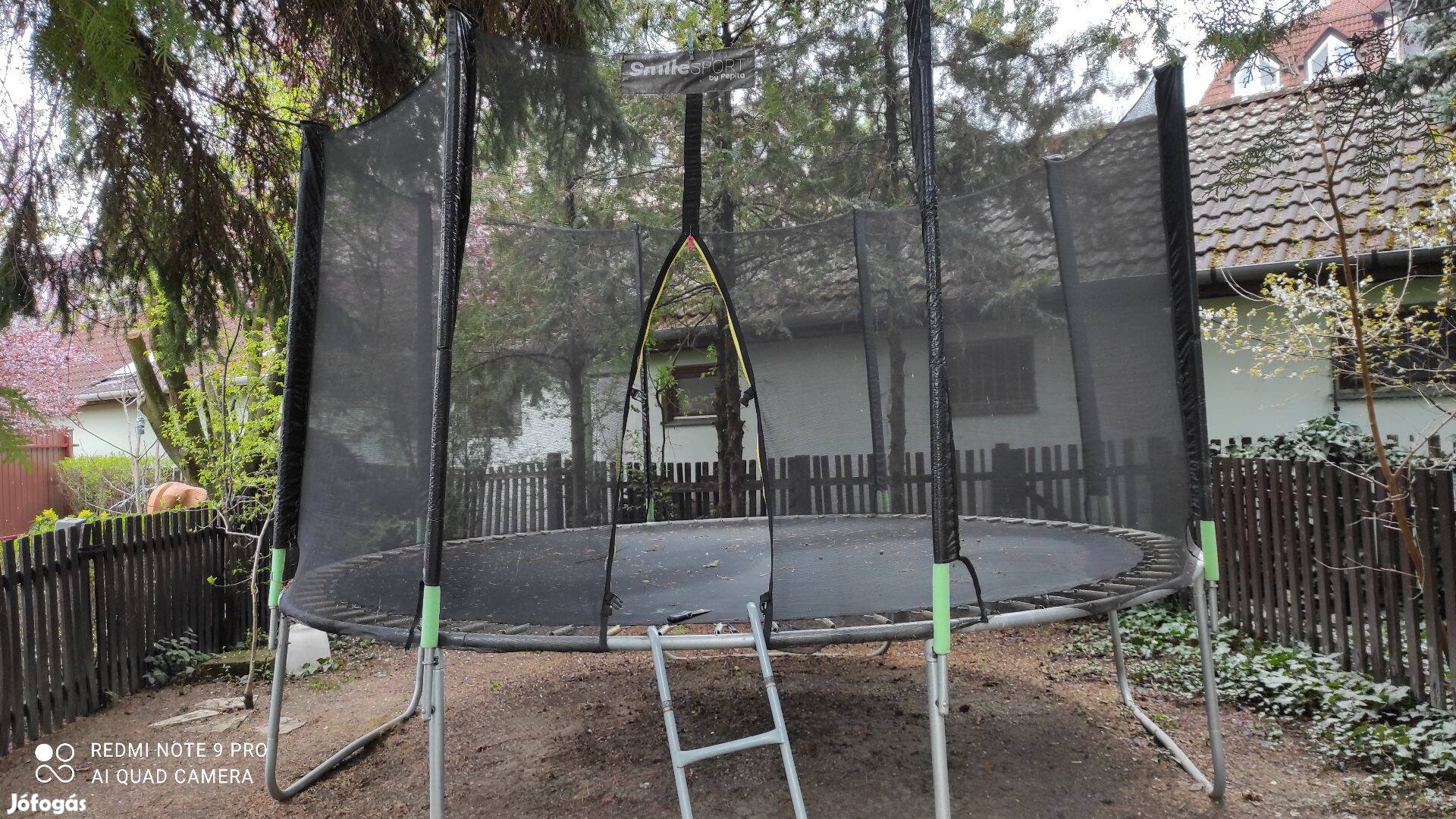 Alig használt trambulin új , még nem használt rugóvédővel és ugráló felület védőponyvával eladó.Biztonságos szórakozás az egész családnak: 366 cm-es trambulin védőhálóval és létrával!