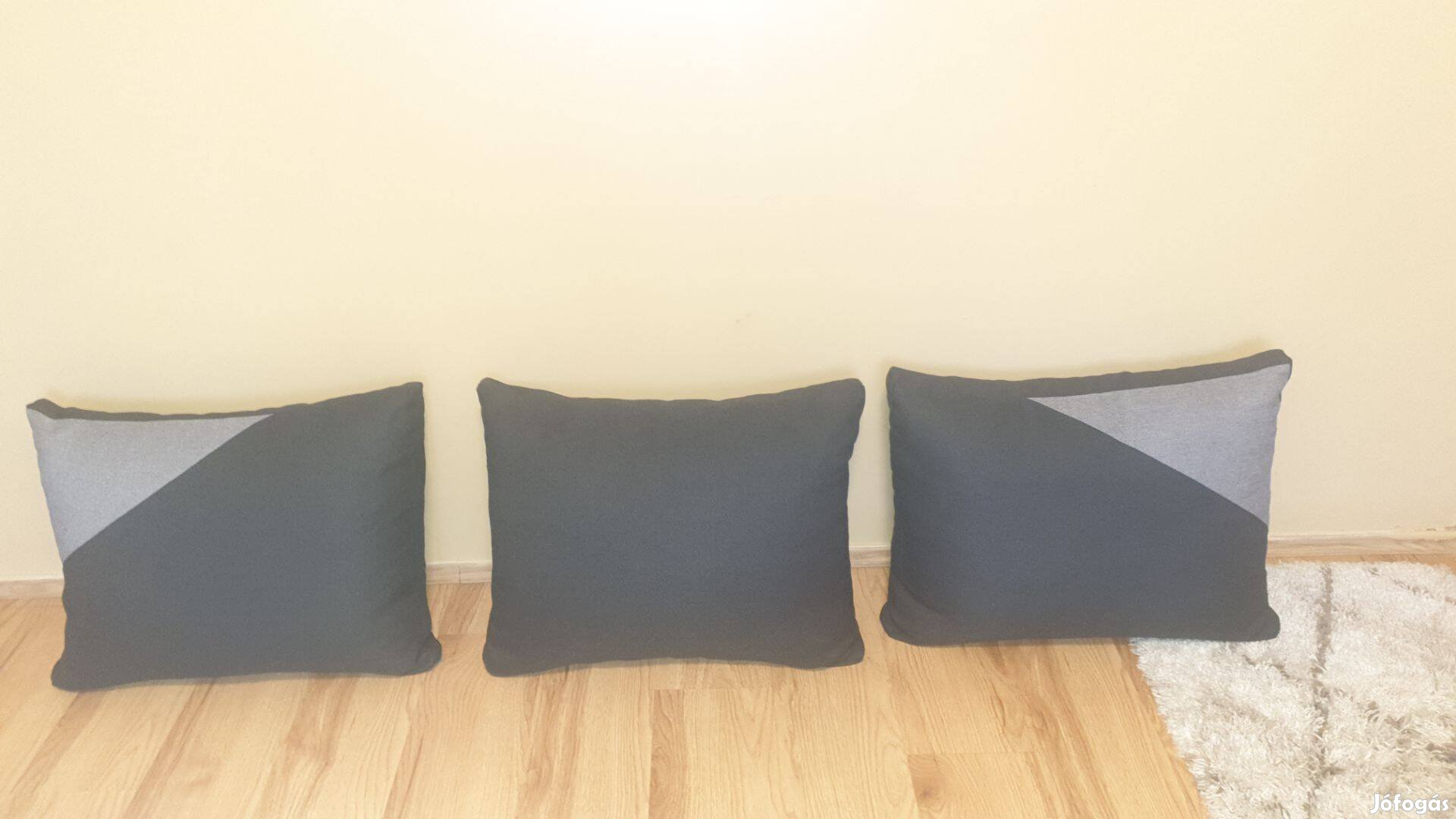 Eladó új, 3 db nagyméretű, 50x60 cm-es, kanapé párna, díszpárna, sötétszürke-világosszürke színben! Nagyon erős, masszív párnák, jó tartást biztosítanak, vastag tömőanyaggal! Mosható huzattal!