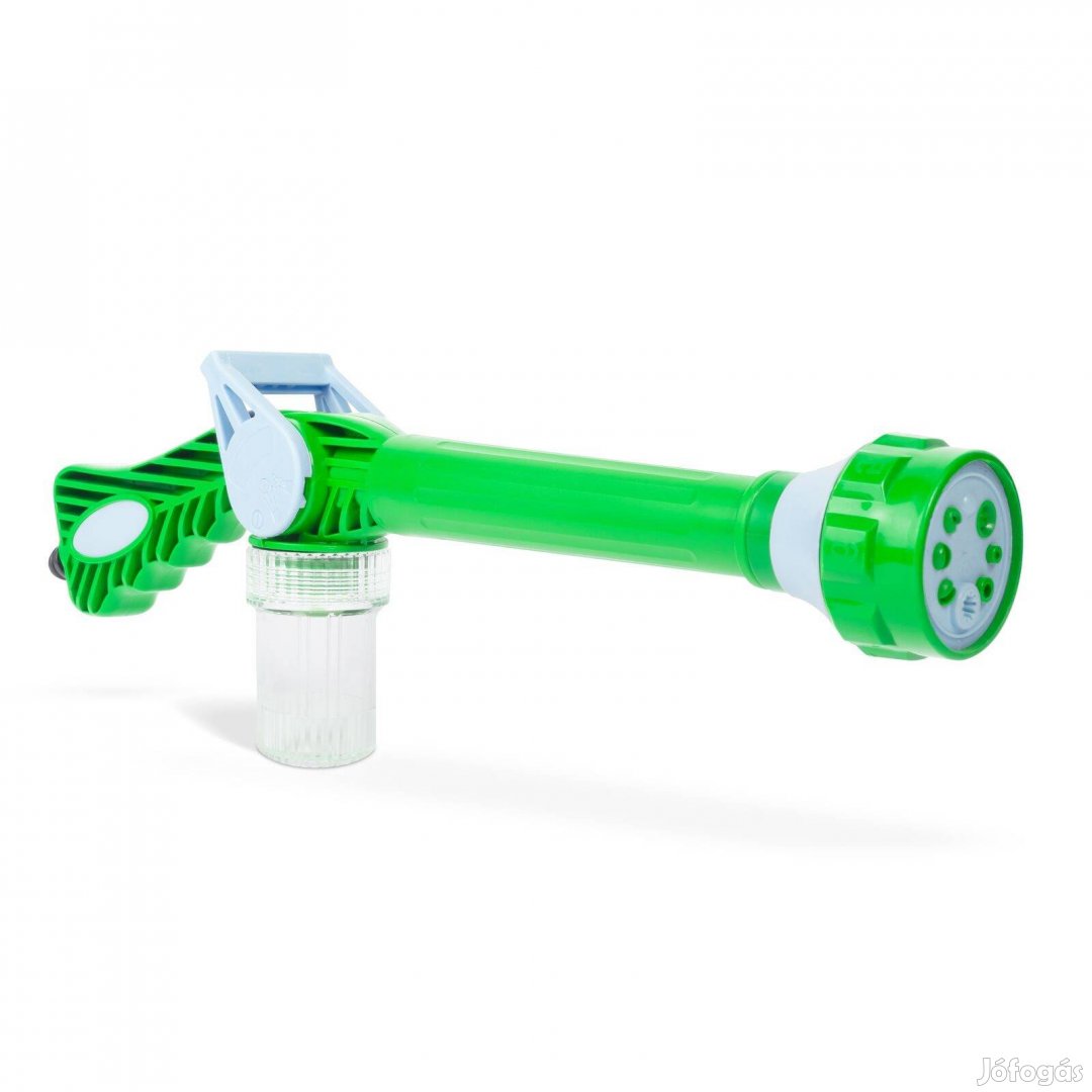 Kertek nélkülözhetelen kelléke ez a 8 féle szórásképpel rendelkező nagynyomású öntözőpisztoly. A gyorscsatlakozónak köszönhetően bármilyen locsolótömlőre egyszerűen csatlakoztatható. A beépített vegyszertartály lehetőséget biztosít, autósampon, tisztítószer vagy akár műtrágya kijuttatására is. A beépített tartálynak és a víznyomásnak köszönhetően ideális lehet például: járdák, teraszok, falak, stablondeszkák, autók, kerékpárok, kerti bútorok megtisztítására, de növények tápoldatozásra is kiváló eszköz (PH6,5-8,5).