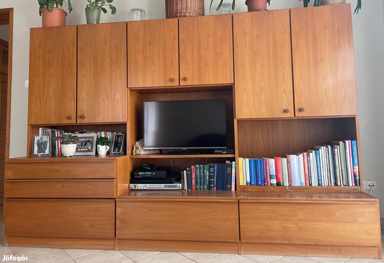 Megkímélt, stabil állapotú 3 részből álló nappali bútor, ami plusz egy fél elemmel (egyajtós résszel) bővíthető. Fiókok, ajtók hibátlanul működnek.