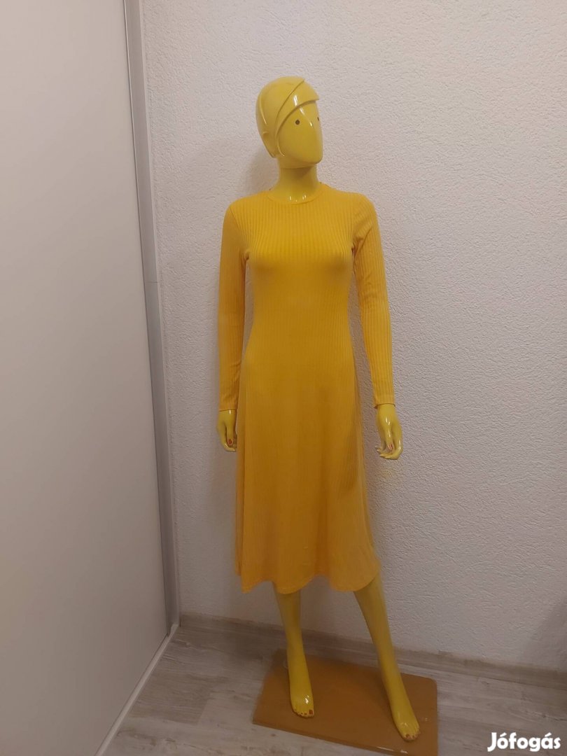 Eladó a képen látható jó állapotban lévő női S es méretű, pamut anyagból készült, hosszított fazonú, hosszú újjú, sárgás színű, maga színében bordás, fiatalos ruha.