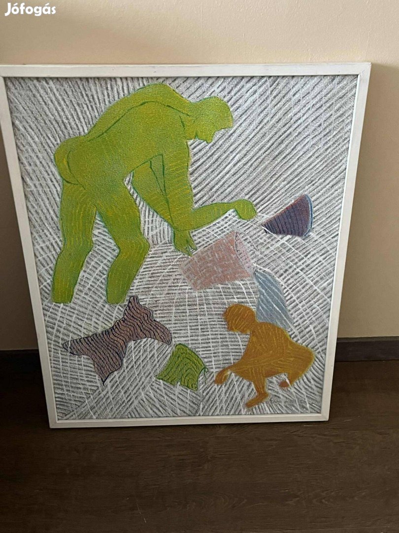 Dániel Éva Játék című alkotása olaj vászon Hilmann technika tudomásom szerint 20 éve jótékonysági árverésen 50 e Ft kikiáltási árról 110 e Ft -ért vásárolt eladó. Jó állapotú alkotás. Irányár 60.000. Ft