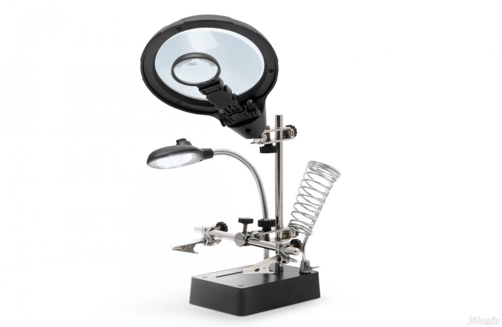 Csipeszes LED panelbefogó paneltartó + pákatartó + dupla nagyító + 2db krokodilcsipesz harmadik kéz