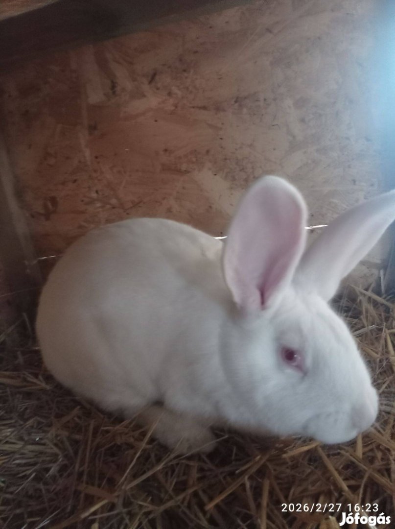 Pannon fehér nyuszik. 3 kg. + Méretben. 2025 dec. 7 én születtek. Továbbtartásra kifejezetten ajánlom! Bak és anyának való. Végig táppal, lucernával, szénával etetett. Meghirdetett ár kilós ár, élősúlyban.