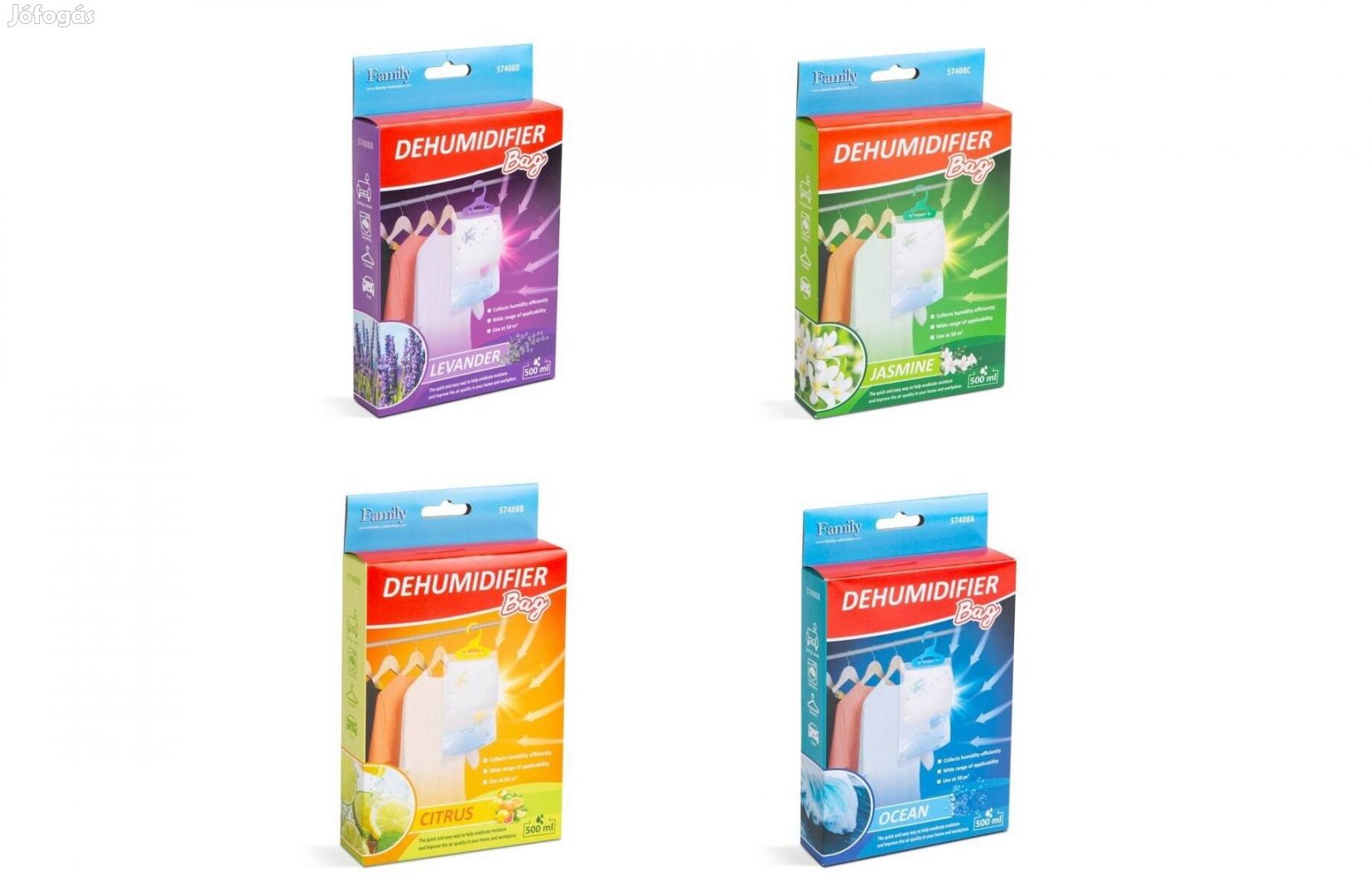 Felakasztható páragyűjtő páramentesítő páraelszívó párátlanító 230g penész rossz szagok ellen 4 féle 57.408