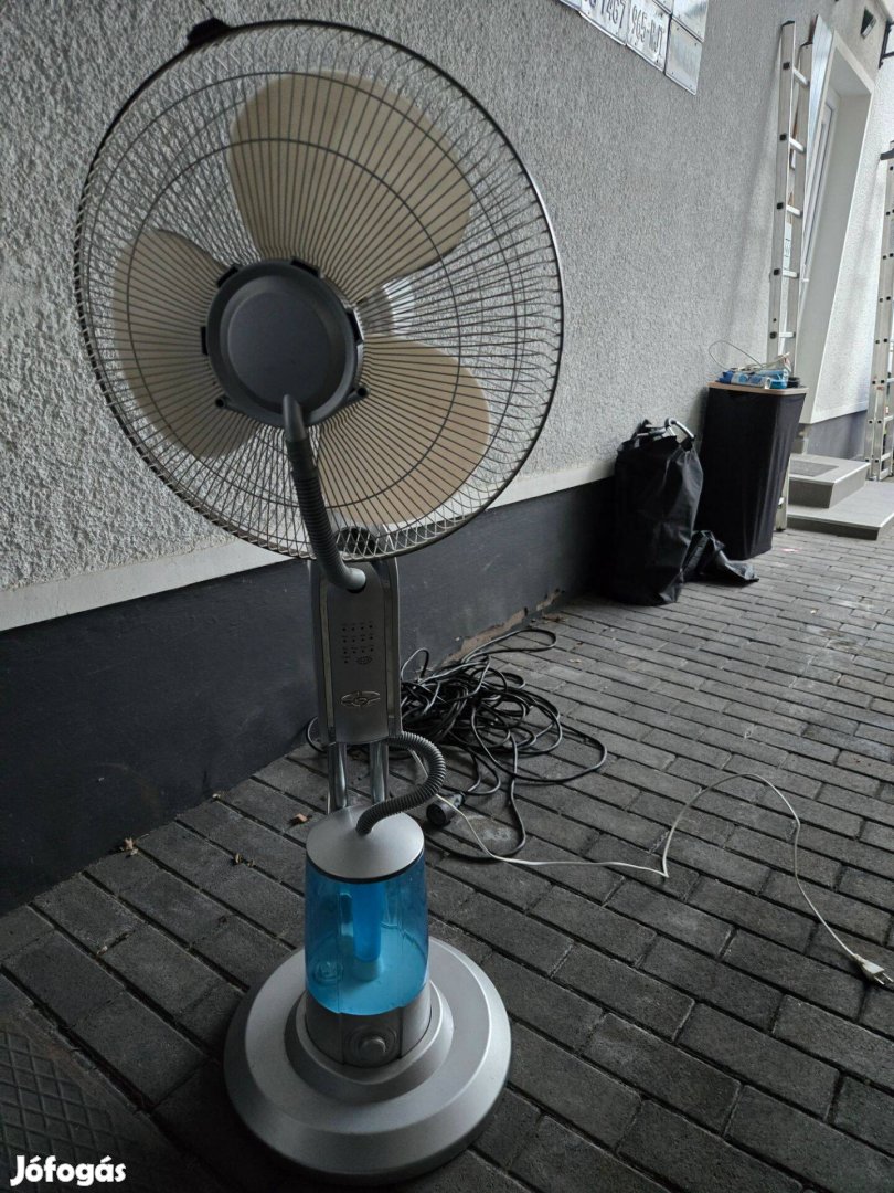 Ez egy párásító ventilátor (vagy ködhűtő ventilátor), ami remek választás a forró nyári napokra. Ez az eszköz nem csak a levegőt mozgatja, hanem a párologtatás erejét használja a hőmérséklet valódi csökkentésére.