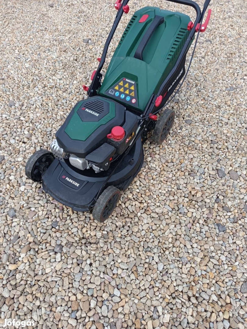 Eladó parkside 150ccm benzinmotoros fűnyíró. Teljesen újszerű állapotú, tökéletesen működik. 43cm vágás szélesség, slag csatlakozási lehetőség, központi magasság állítás. Fűgyűjtő és mulcsozó adapter jár hozzá! Használt termék, érvényes bolti garancia már nincs rá! Mérete miatt futárral nem tudom küldeni. Debreceni átvétel megoldható!