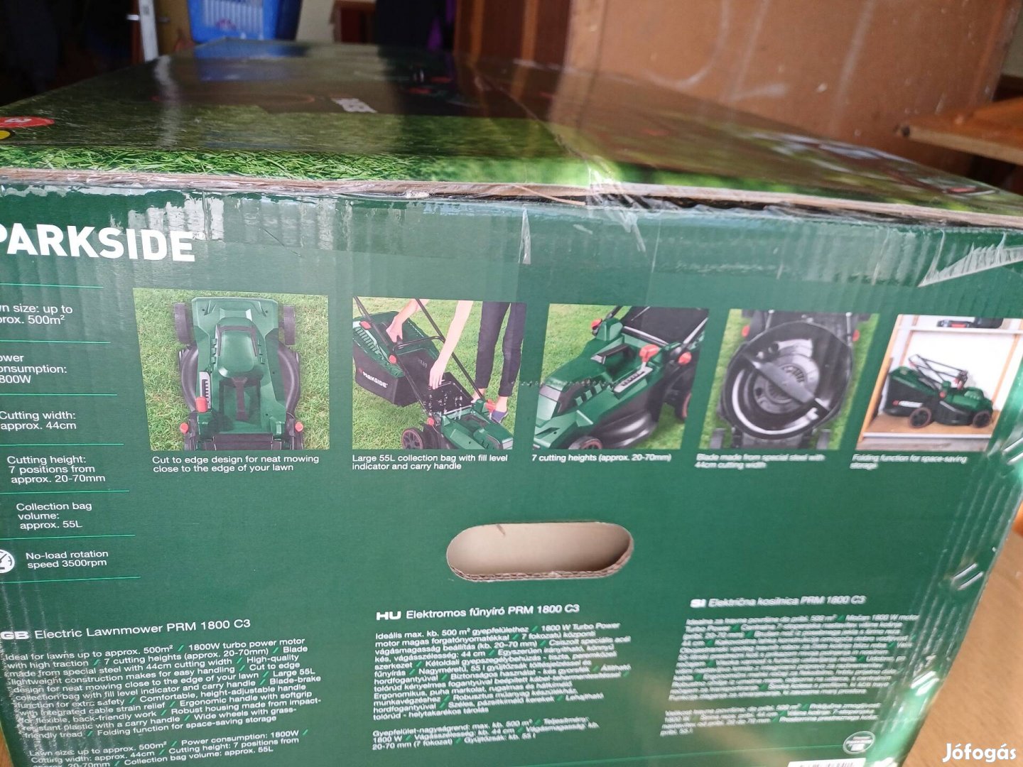 Parkside PRM 1800 C3 hálózatról működő fűnyíró. Teljesen új, kibontva sem volt. 1800W, 44 cm vágásszélesség, 20-70 mm közt állítható vágásmagasság. Személyesen átvehető Debrecenben. Máshol is hirdetem, ezért vásárlás előtt kérem érdeklődjön.
