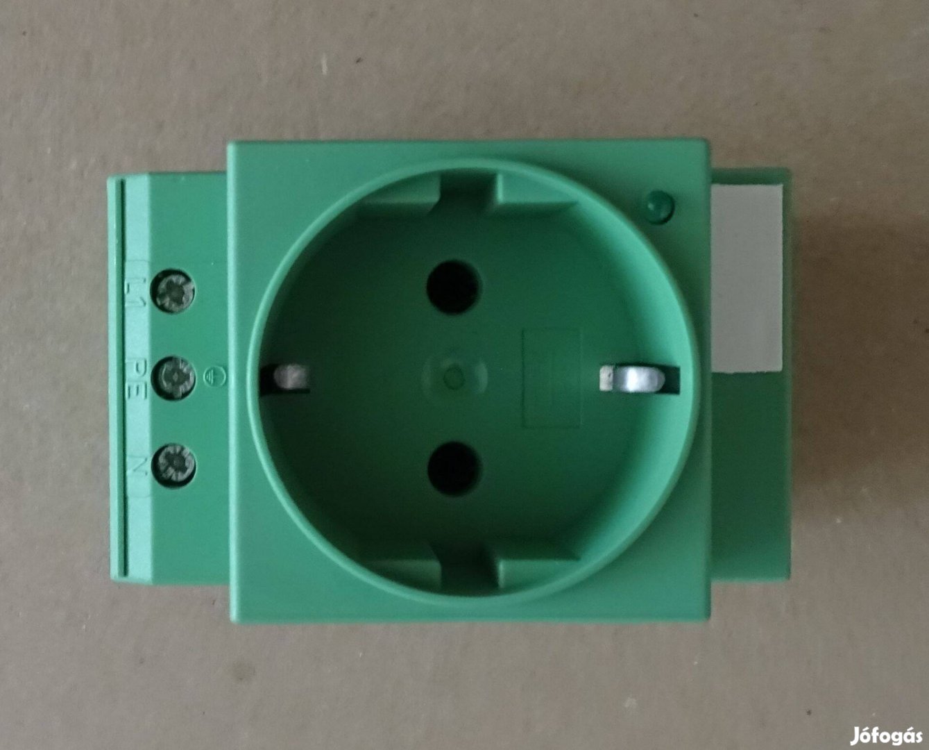 Kapcsolószekrény-csatlakozóaljzat, kalapsínre szereléshez és szervizinterfészben, csavaros csatlakozással, készülékház színe: zöld.