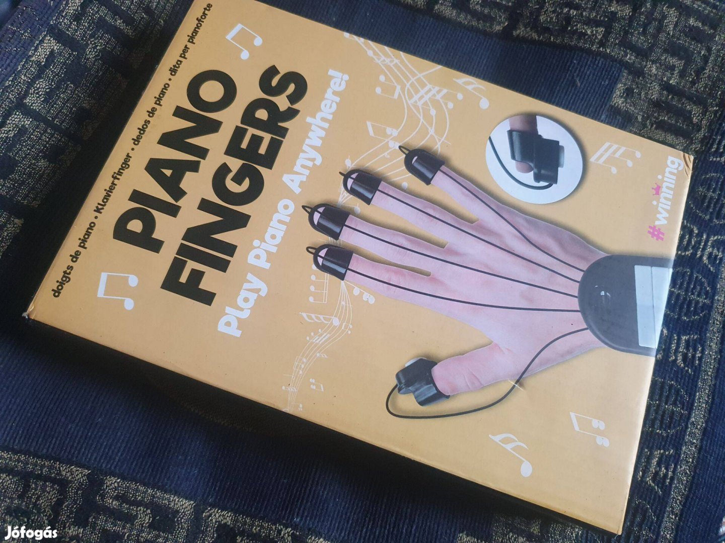 Az ujjakon lévő gombok nyomásra zongorahangot adnak ki....