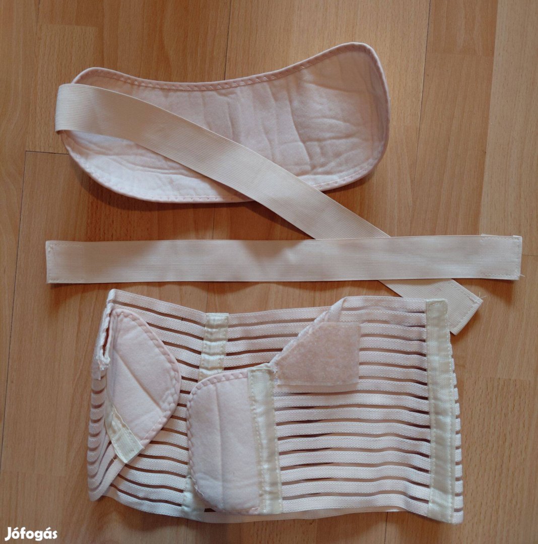 Pár alkalommal viselt pocaktámasz, bézs színben. Nagyon kényelmes, praktikus darab hosszas várakozás vagy utazás során, utolsó hónapokban a mindennapokat könnyítheti meg.