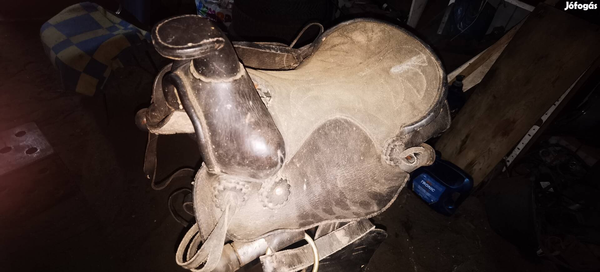 Képen látható állapotban és képen látható bőr kengyellel, szíjjal eladó szép póni western ló nyereg.