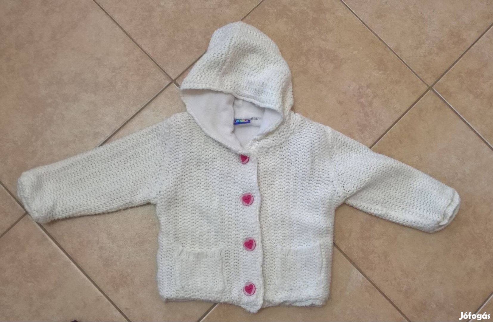 Eladó a képen látható kislány kötött / bélelt pulóver nagyon jó állapotú.74/80 méret. 6-12 hó méretű.Tartalék gombbal.